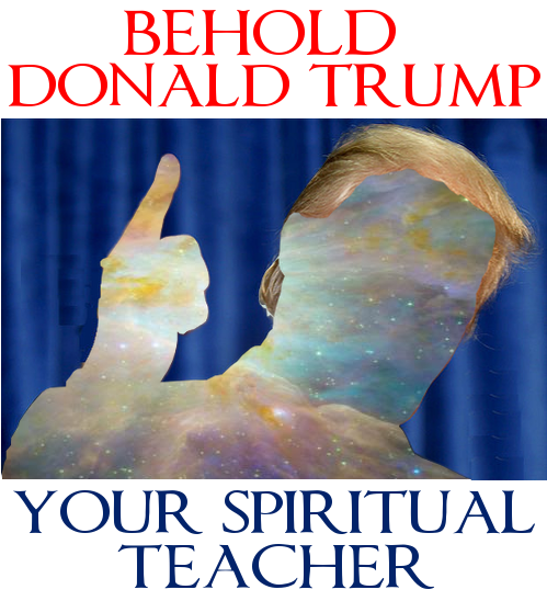 Now this is where the teaching of Donald Trump, blessed be his name, becomes truly sublime, demanding that I really step up to the plate of my own spiritual maturity. He isn’t simply giving me the chance to decide whether I want ego sitting in my Oval Office. He is caricaturing the ego to such a degree that he is practically begging me to see through its act entirely and opt out of its drama completely.