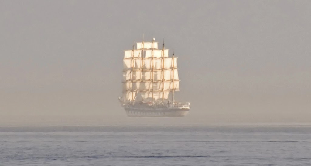 Fata Morgana is a mirage right above the horizon, seen at sea, in polar regions or in deserts. The mirage may involve any distant object, including boats, islands, and the coastline.