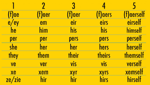 | HE/SHE | HIM/HER | HIS/HER | HIS/HERS | HIMSELF/HERSELF |