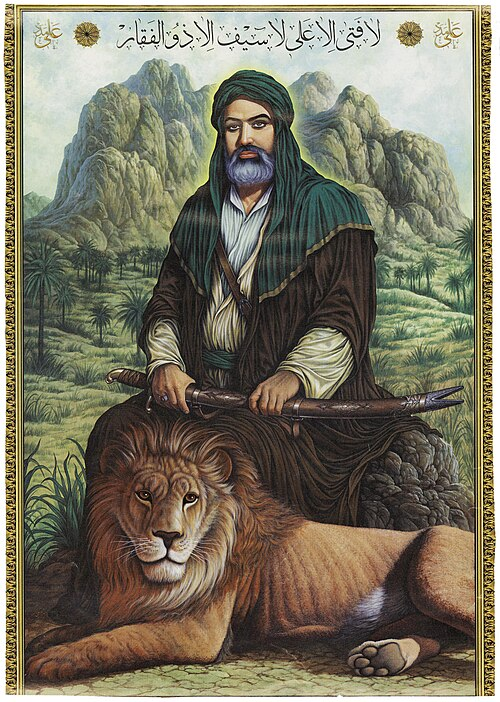 A conventional depiction of Ali ibn Abi Talib in the Shia tradition.