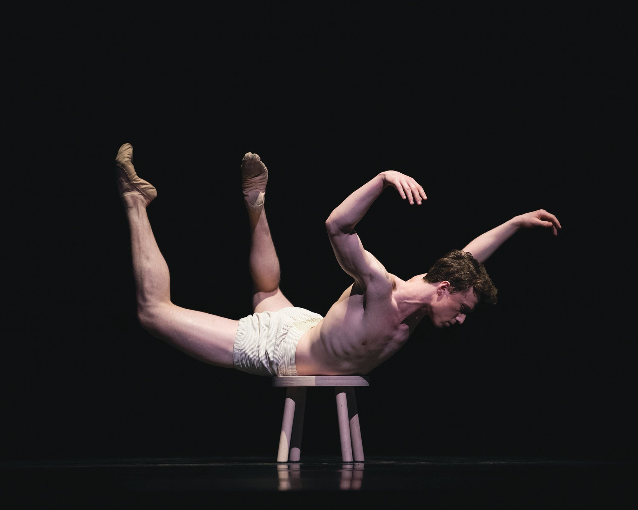 During soloist Benjamin Freemantle’s performance in “Your Flesh Shall Be a Great Poem,” dark spherical planets and solar eclipses are projected onto the backdrop, intensifying the sense of solitude in a vast world. Accompanying Freemantle on the stage is a short step stool; rather than dancing with a partner, Freemantle incorporates this unconventional prop into his dancing, highlighting his loneliness. It is rather impressive that such a stiff object — one that is notorious for making loud screeches when pulled across hard floors — glides effortlessly along his skin and spins on the stage without a noise.