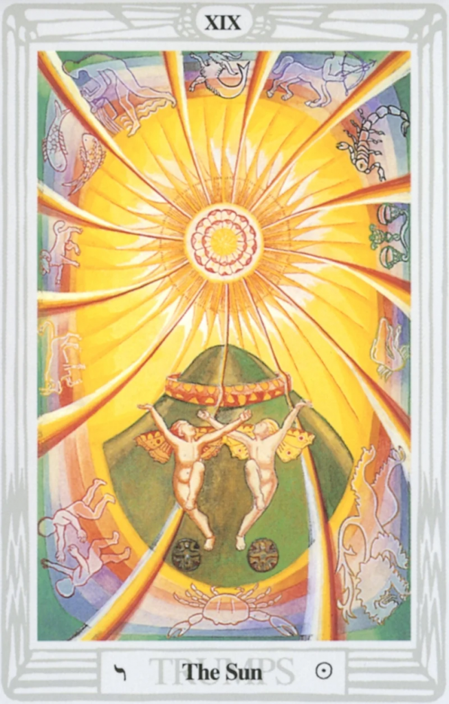 | The Sun This is a warm happy energised card, which promises healing, growth and enjoyment. We have emerged from the somewhat shadowy and mysterious realms of the Moon into the bright light of day now. Gone are the tests and trials set us by the demands of our own growth. It’s time to laugh and dance and celebrate.When the Sun shines, we find new ways of resolving problems, new perspectives and fresh viewpoints. We see things more clearly, and are able to objectively consider obstacles and difficulties. We have the energy we need to throw ourselves into life, and to dynamically deal with anything that we discover.On a day ruled by this card, let yourself be lit from within… allow your own inner Sun to shine out and greet the world. No matter what other cares and worries may weigh you down, on this day try to put them aside and simply revel in the glory of being alive. Today celebrate your victories, applaud your successes, and be proud of your achievements.We can often forget to feel joyous with ourselves, becoming buried under worries and stresses. But if we can, for a moment, step back and look only toward the positive we shall find ourselves more able to deal with things. Affirmation: “My inner Sun shines bright, surrounding me with light (That rhymes!!).” |