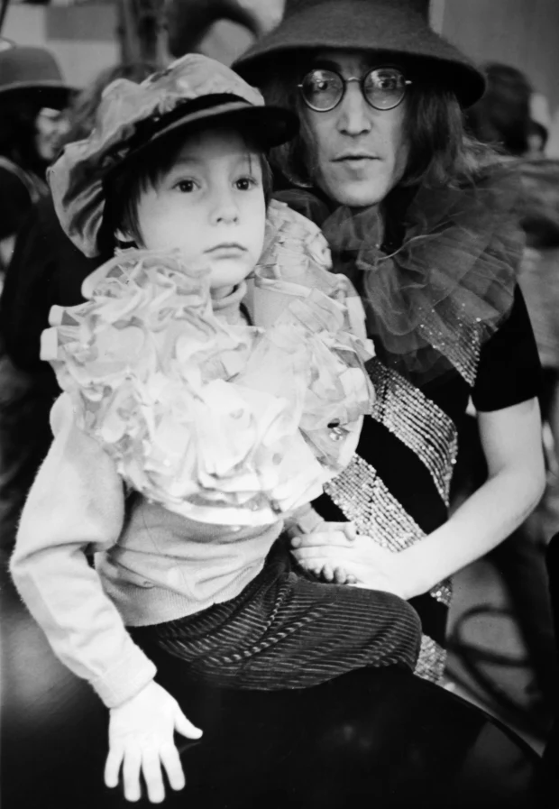 Julian Lennon with his father in London in 1968. CREDIT:GETTY IMAGES